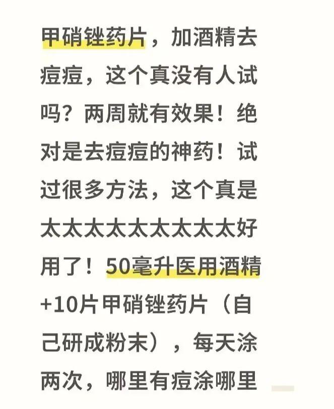 在社交平台上,有很多关于甲硝唑“祛痘”“除黑头”的帖子。有人把甲硝唑片碾碎敷脸,有人推荐直接涂甲硝唑凝胶,甚至有人把它当成“平价祛痘神器”。